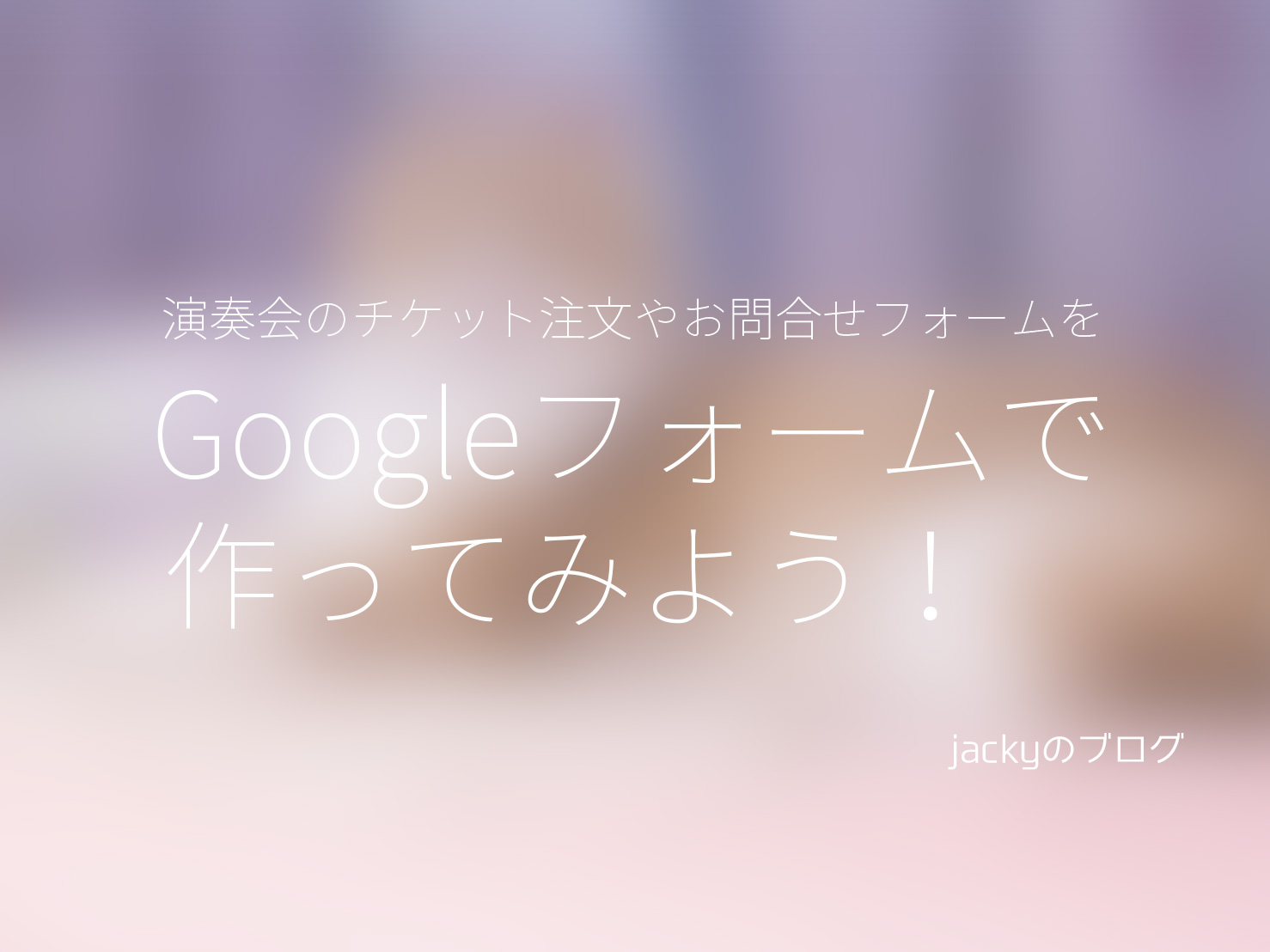 演奏会お役立ち情報 演奏会のチケット注文やお問合せフォームをGoogleフォームで作ってみよう! 個人主催の場合、チケットの注文とお問合せは、今でも電話かメールがメインだと思いますが、仕事中や練習中に電話に出られなかったり、ほしい情報が一回で送ってもらえず、何度もメールでやり取りしたりと、皆さんがきっと経験したことありますよね。そんなと... 2020.10.15 演奏会お役立ち情報